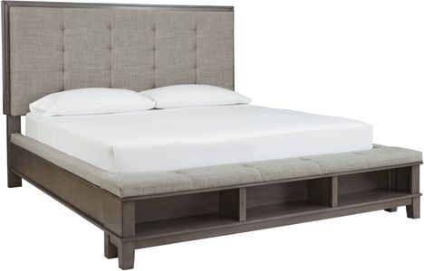 Benchcraft® Hallanden Gray California King Upholstered Panel Storage Bed