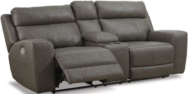 Signature Design by Ashley® Roman Smoke Power Reclining Loveseat with Console
